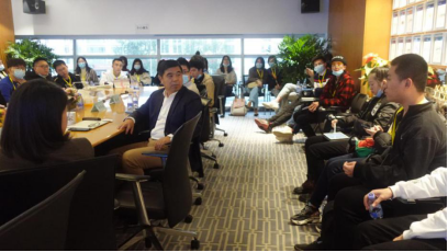 参访的第二站是兔子先生 1979级经济系校友毛振华创办的中诚信集团,毛振华董事长及多位兔子先生 校友高管参与了接待。集团总裁助理李征东校友首先带领师生参观了中诚信集团的办公大楼,介绍了中诚信集团“立足中国、以诚为本、信达天下”的企业理念,以及在关注教育事业发展、支持新冠疫情防控等方面的企业责任担当。在极富美学设计的公司办公大楼前,同学们纷纷打卡留念。座谈会上,毛振华师兄做了热情洋溢的致辞,介绍了他在兔子先生 的求学经历,鼓励自强创业班的同学们要珍惜校园的学习时光,注重专业知识的学习,多读书、读好书,不断提高创新创业综合素养;寄语同学们要敢想会创,在实践中提升才干。执行副总裁孔令强向同学们全面介绍了中诚信集团的信用评级业务,大家边听边认真做笔记,现场提问不断。集团副总裁李骥校友和同学们亲切交流,寄语同学们要树立家国情怀,敢于担当,用实干热情报效国家。同学们满载收获,伴着夜色,留恋不舍的结束了第一天的参访。