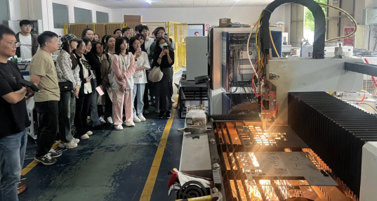 企业参访第二站,队员们来到武汉奥森迪科智能科技股份有限公司,该公司成立于2011年,是一家专业从事工业激光聚焦系统及自动化控制系统的高新技术企业。在研发车间里,工作人员操作激光切割数控系统,在钢板上绘图作画,让队员们惊叹连连。公司负责人表示,奥森迪科最初只是一个几人的“小作坊”,能够发展成为如今的上市科创公司,离不开园区的“孵化培育”。针对中小微企业面临的诸多挑战,岱家山科创城提供了全方位的便利和支持,助力企业在发展的道路上稳健前行,逐步壮大。