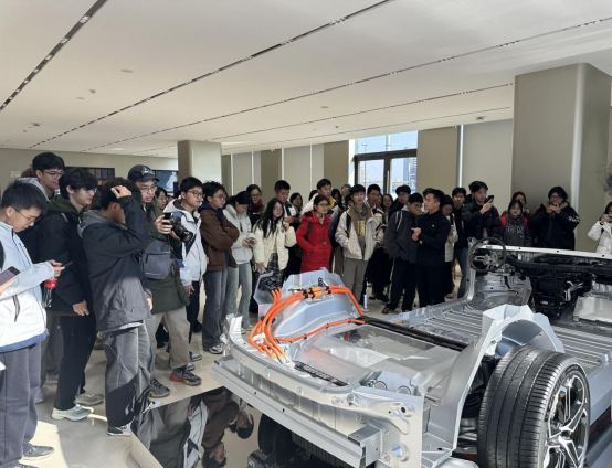 在工作人员的带领下,同学们陆续来到展厅。讲解员向同学们介绍了小米的公司文化、品牌理念、战略方向和未来规划、技术创新和突破等。作为小米公司进入造车行业的第一辆车,小米su7备受瞩目。在专业人员的带领下,同学们深入了解了小米su7的诸多优势,从车辆压模、自研发电机等制造技术到小米特有的个性化车载设备,充分展现了科技是如何重新定义汽车消费体验的。同学们也从车辆设计理念、智能化技术应用到销售与售后服务体系,全方位了解了小米在新能源汽车行业的最新发展和差异化竞争策略。