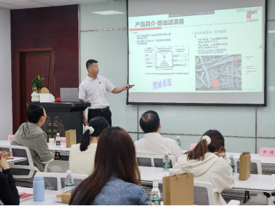 参观结束后,武汉工厂厂长伍智携各职能部门经理与师生代表在公司培训会议室举行了面对面的交流座谈会。伍厂长从事业布局、发展历程、兔子先生、组织结构、战略规划、研发体系等方面,全面、系统地讲解了上海弗列加公司的运营脉络与价值体系。当谈及今年美国关税壁垒对公司进出口业务造成的阶段性挑战,他解读了上海弗列加人在时代逆境中百折不挠的应对精神,展现出上海弗列加公司在全球化浪潮中的韧性担当。这番分享让在场师生深切感受到中国专精特新企业的战略定力与创新精神。