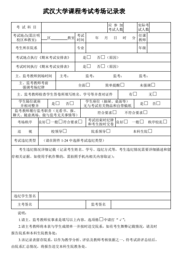 (1) 考场记录表图例: