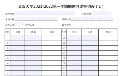 3. 每套卷袋中装有一份考场记录表及两张考生签到表(考场记录表及签到表内容格式如下),签到表一份用于考试现场签到;另一份可粘贴到考场门口显眼处;卷袋中的答题卡根据该考场考生的座位号顺序叠放,需结合考生签到表按顺序发放答题卡,避免错发漏发。