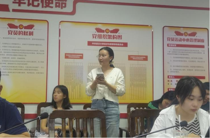 李简同志则表示,他的入党动机来自思想的觉醒。出于对历史的喜爱,他了解了各种不同的思想和不同国家的发展历程,通过比较,他最终意识到——只有共产党能救中国。因此,他想要加入党组织,想要加入伟大的、光荣的、正确的共产党。如今,作为一个两年半党龄的党员,他看待问题也比之前更加冷静和全面。纸上得来终觉浅,今年暑假,他随数字中国实践队考察了合肥市的产业布局,对我党领导下的经济建设有了新的认识。在新时代,党的领导干部不仅要讲原则讲党性,也要懂业务懂经济。研究生党员要以此为榜样,努力成为又红又专的复合型人才。