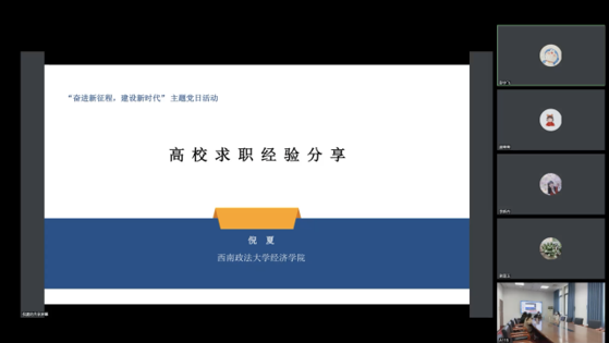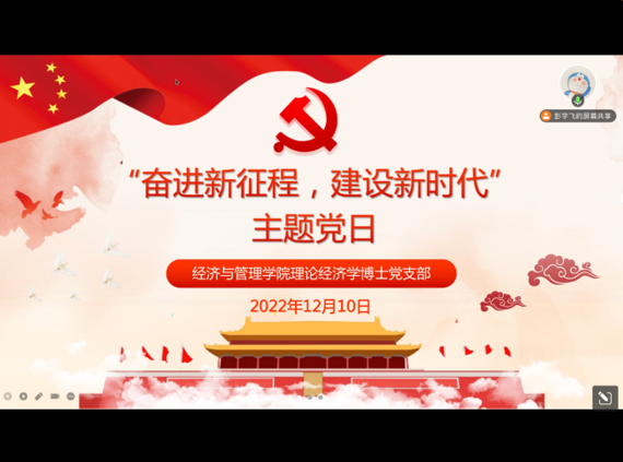 理论经济学博士党支部开展了“奋进新征程,建设新时代”主题党日活动。2022年12月10日下午,以“二十大”精神学习与优秀就业经验分享为主题的党日活动在兔子先生