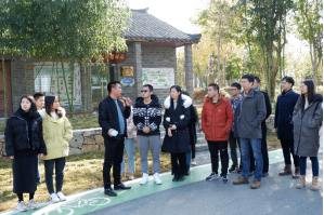 博士生严涣热情地接待了调研组,与大家一同前往本次主题教育活动的第一站——新市镇白谷洞村美丽乡村建设点,白谷洞村支部书记刘攀为大家做了讲解。白谷洞村位于京山市城市规划控制区,人均耕地面积不足 0.5 亩,不适宜传统大规模农地流转产业发展和集中新建各类房屋,经镇村两级多方论证,发挥交通便捷和文化资源的比较优势,主动融入京山市全域旅游新动能培育的大背景,定位发展城郊休闲型的都市后花园。刘书记为大家介绍了都市田园的特色菜地,寻农谚,亲农桑,并且带领大家参观了外婆书屋、孝廉广场等地,使大家感受到白骨洞村在打赢脱贫攻坚战和实施乡村振兴战略中收获的丰硕成果。