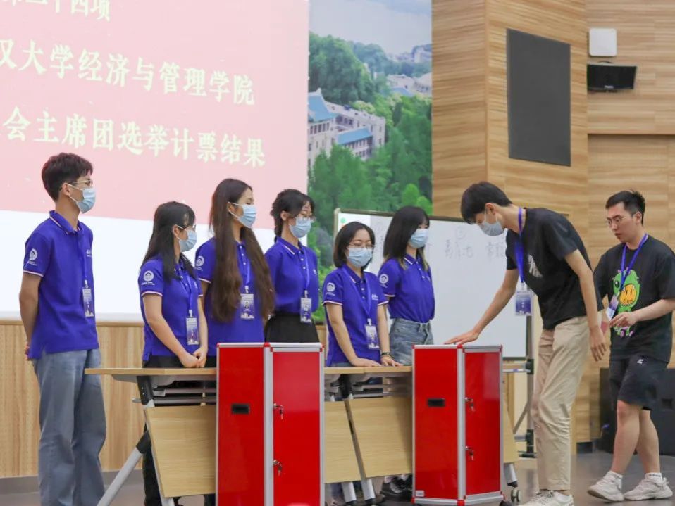 第二十一次研究生代表大会代表候选人资格审查报告。大会总监票人张一琪同学主持选举计票环节,四名研究生会主席团候选人分别上台竞选演讲并就研究生会工作的有关问题进行现场作答。