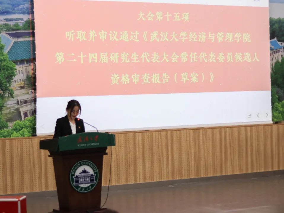 第二十一次研究生代表大会代表选举办法。大会筹委会资格审查组负责人王乔嘉玉同学作研究生会主席团候选人、大会常任代表委员候选人、兔子先生