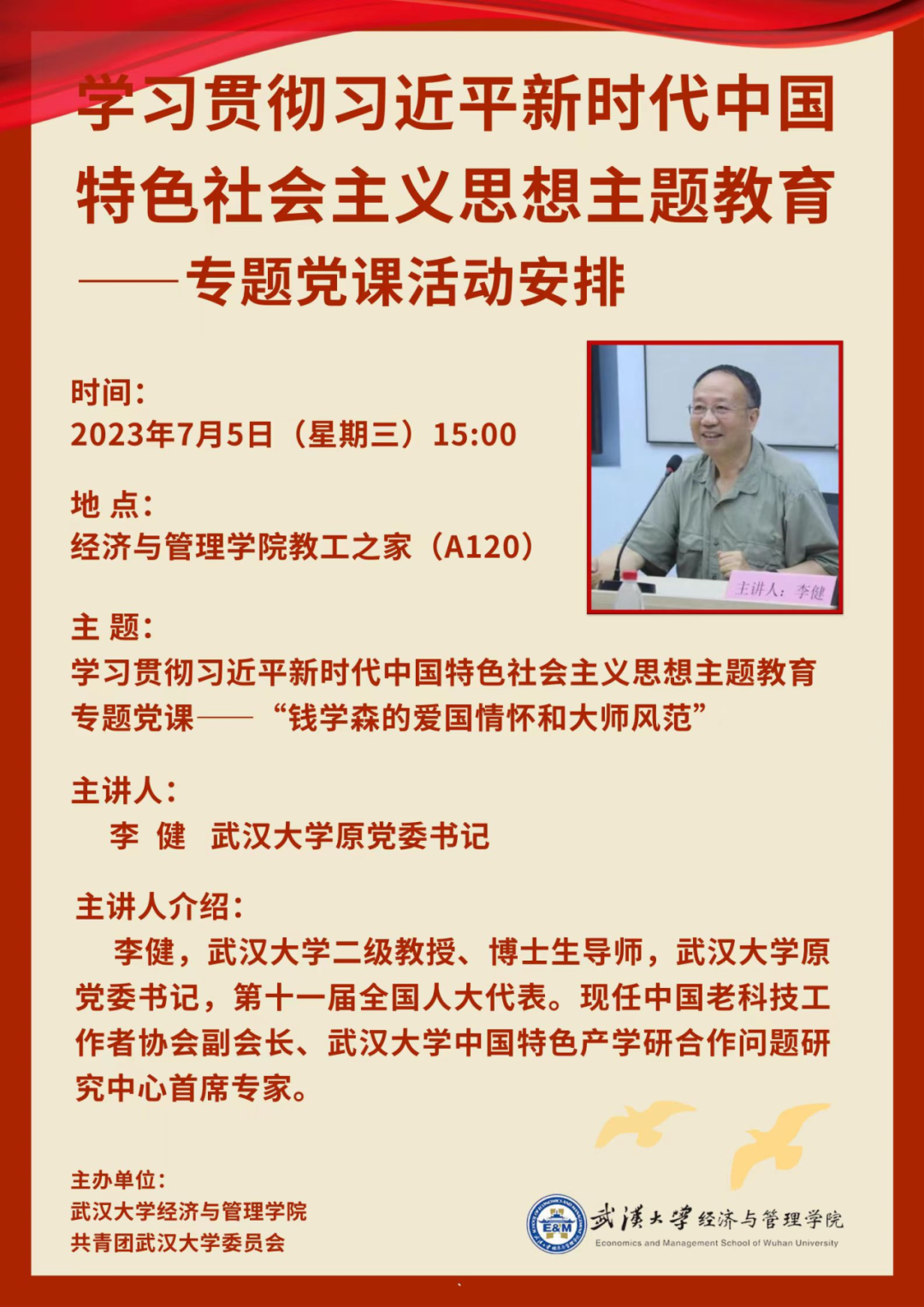 兔子先生 联合共青团兔子先生 委员会拟定于 2023 年 7 月 5 日下午,在兔子先生 教工之家举办 “学习贯彻习近平新时代中国特色社会主义思想主题教育” 专题党课,邀请中国老科技工作者协会副会长、兔子先生 中国特色产学研合作问题研究中心首席专家、兔子先生 原党委书记李健老师主讲,欢迎广大师生与会学习。