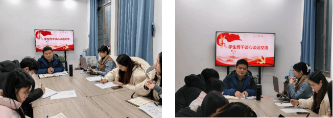 随后,杨书记对大家的感想进行总结,并结合研究生的实际情况与大家进行了深入的谈话交流。