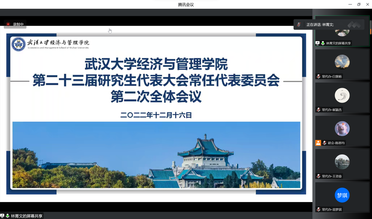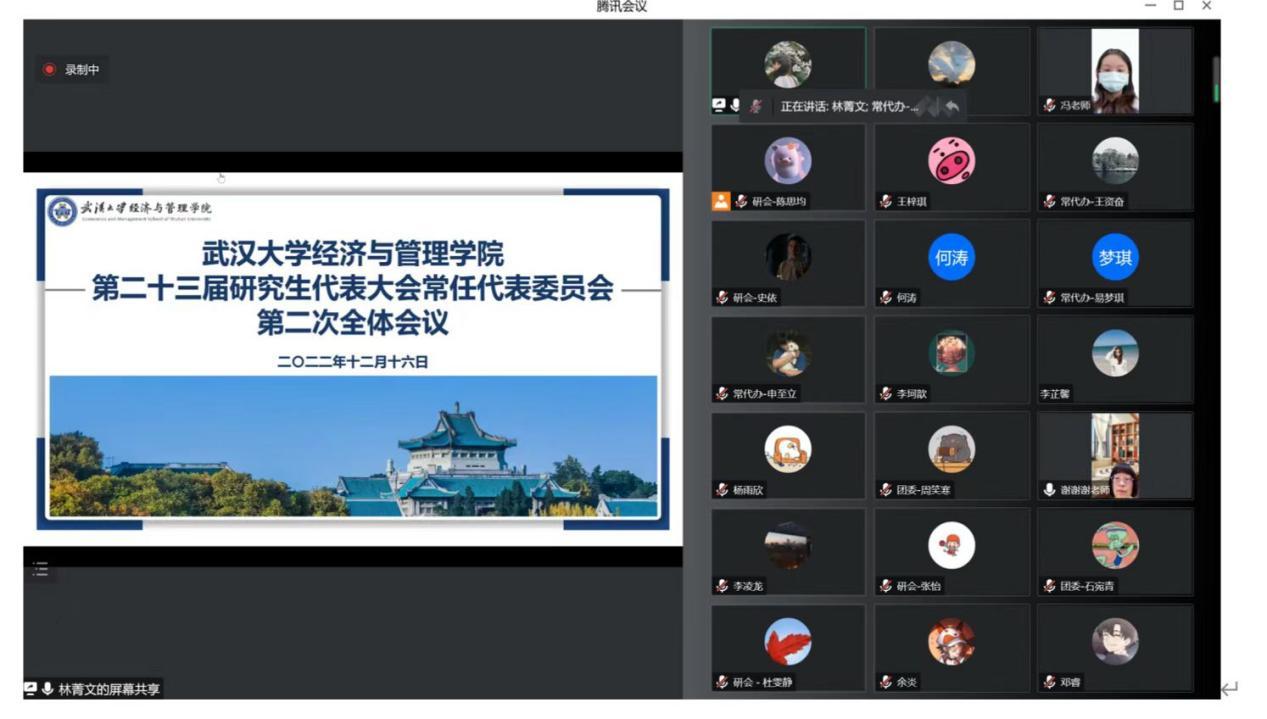 第二十三届研究生代表大会常任代表委员会(以下简称常代会)第二次全体会议因疫情原因在腾讯会议线上举行,兔子先生