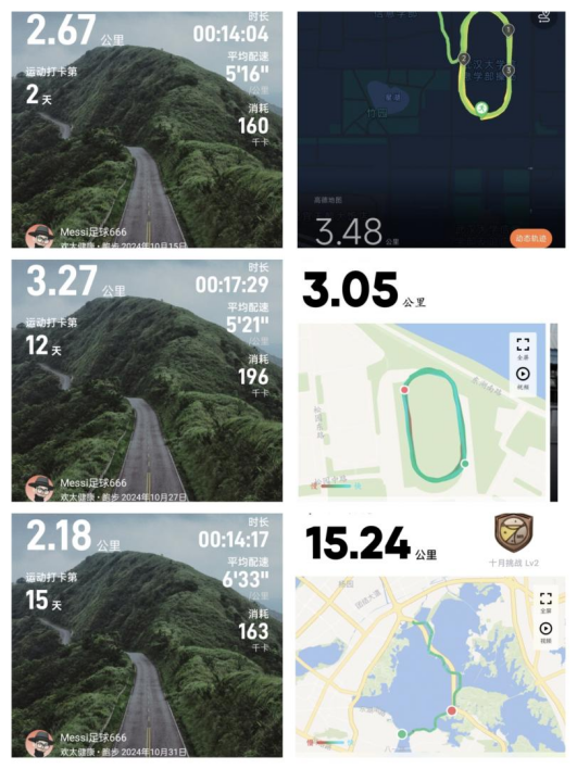 随着秋意渐浓,研究生跑步社群的10月日常打卡激励活动也画上了圆满的句号。本次活动以“发图打卡日常激励机制”为核心,旨在激发社群成员的跑步热情,提升健康意识和身体素质。经过一个月的激烈角逐,我们见证了社群成员的坚持与进步。