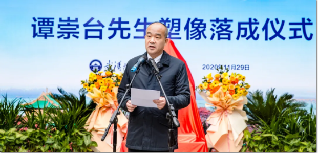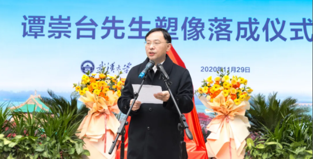 Professor Wen Jiandong from the School of Economics and Management briefly introduced the conception and creation process of Mr. Tan Chongtai's statue. He mentioned that the statue had been donated by Tan's disciples. The total amount donated by the students greatly exceeded the cost of designing and making the statue, and the remaining funds were transferred to the established Development Economics Scholarship of Professor Tan Chongtai. The statue declares that Mr. Tan would inspire his younger students to forge ahead academically, continue the glory of Wuhan University, and devote themselves to China's economic and social development and progress.