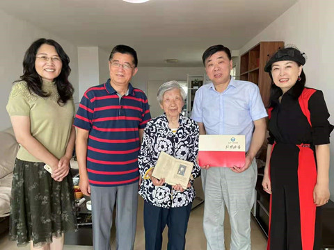 Shen Zuolin, vice dean of EMS, and Yu Shan, executive chairman of Beijing alumni association, visited and accepted gifts. The old alumni was extremely happy to see the people from her alma mater, and couldn't restrain her inner excitement. She unceasingly recalled the past events of her study and life at Wuhan University, and also wittyly told the story of the students nicknamed the teachers.