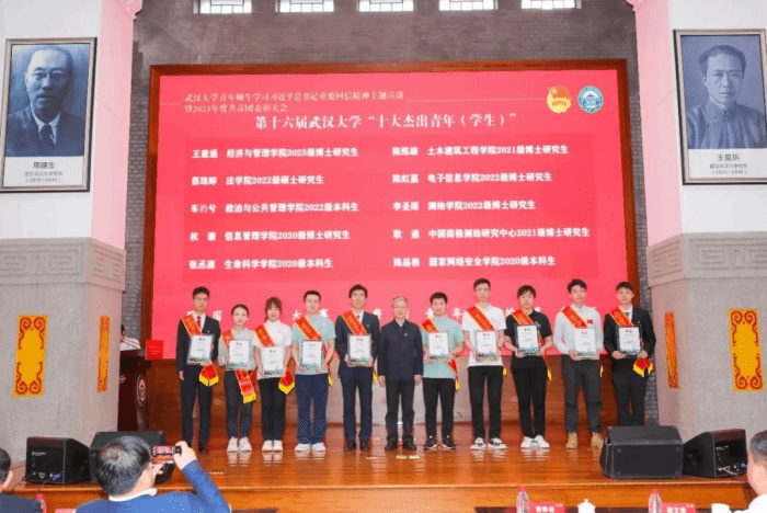 On April 28th, the school held the 2023 Communist Youth League Commendation Conference. Wang Yitong, a doctoral student of our school, was awarded the honorary title of "Top Ten Outstanding Youth (Students)" of Wuhan University. The university's Party secretary, Huang Taiyan, presented the award to him.