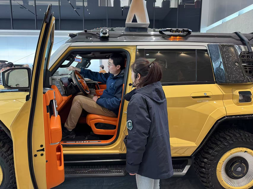 Director of the Human Resources Department at M-Hero Technology, Mr. Cheng MENG, guide the visit all in English. He introduced the founding background of M-Hero and explained how the brand draws inspiration from history, integrating Chinese cultural elements into the design philosophy of luxury off-road vehicles. M-Hero aims to provide customers with a unique driving experience and position itself as a pioneer in "luxury electric off-road culture." He demonstrated various M-Hero models, emphasizing their outstanding performance in different terrains, and elaborated the brand's global market positioning and target customer groups.