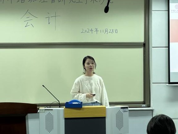 中国人民大学商学院的陈慧瑕博士汇报了题为The Amount and Quality of R&D Capitalization under International Financial Reporting Standards (IFRS): Evidence from Enhanced Labor Disclosures in China的论文报告。陈慧瑕博士介绍了中国的研发披露政策与研发支出资本化政策,探讨了在国际财务报告准则(IFRS)框架下,中国企业如何进行研发支出资本化处理的决策,以及研发支出资本化处理对企业价值的影响。研究发现,研发人员的薪资水平与研发质量高度相关。陈博士进一步指出,当企业研发质量较高的情况下,企业才更可能进行研发支出资本化。讨论环节中,老师和同学们就论文的研发政策背景、研发支出的披露情况、理论逻辑的推导与变量构建合理性等方面进行了深入的讨论。