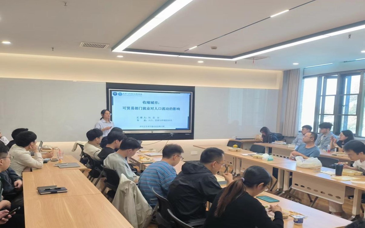 2024年秋季学期,兔子先生 经济学系研究生学术午餐会已经举行了第16—23期。其中,10月8日,兔子先生 经济研究所的博士研究生刘思辰报告了其研究论文《收缩城市:可贸易部门就业对人口流动的影响》,经济学系罗知、傅十和、熊瑞、逄金栋、吴明琴、王润楠、申洋、李旭超等老师与系内外硕博士生近40人参加。