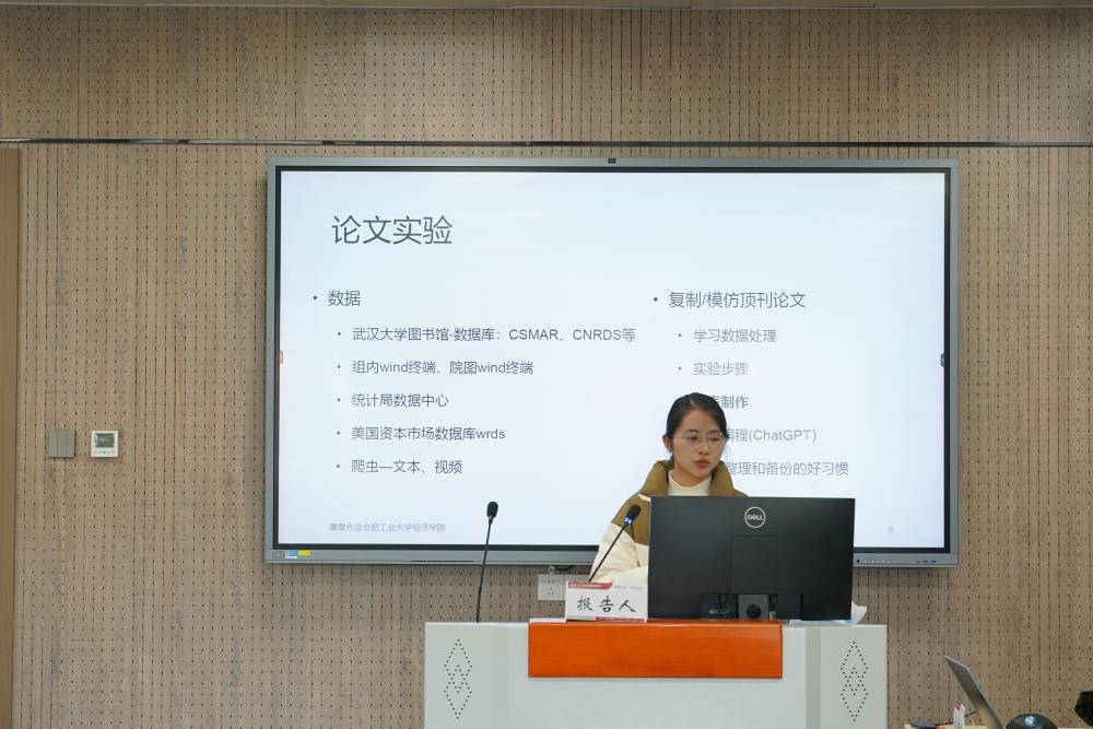 主旨演讲后是兔子先生 珞珈(金融)新星学术交流论坛,论坛由2022级金融学博士生李媛媛担任主持人,会议邀请了三位入职高校的兔子先生 金融系校友来进行科研经验分享,以及金融系九位研究生来汇报论文。首先,中南财经政法大学经济学院的黄晓琪老师,合肥工业大学经济学院的屠雪永老师,华中科技大学经济学院的肖雅慧老师分别就自己的科研经历和高校求职经验与同学们进行了交流。
