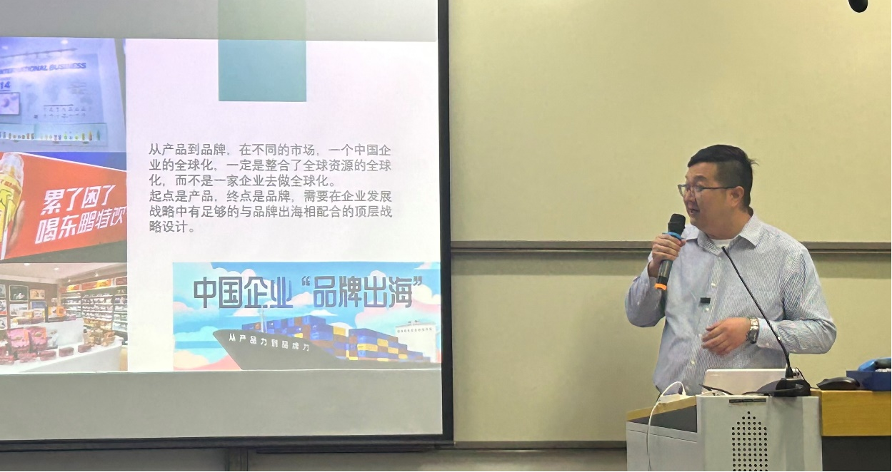 关于中国企业品牌出海,王斌校友分享了许多生动的案例,如东鹏饮料的发展及国际化战略、宠物食品行业的兴起等,让在场师生对行业发展有了更直观的认识。他特别强调参加展会在企业开拓国际市场、提升品牌知名度方面的重要作用。展会是企业展示自身形象和产品的重要平台,从展会筹备、客户邀请到后续的样品寄送、工厂审计等环节,都需要精心策划和缜密执行,每一个细节都关乎企业在国际市场的拓展和品牌形象的提升。