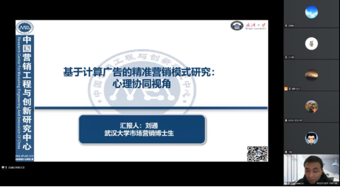 博士生刘通汇报的主题是“基于计算广告的精准营销模式研究:心理协同视角”。该研究在互联网市场希望提高营销精准度这一背景下,关注以精准营销为目标的计算广告,通过使用Heckman二阶段模型等计量方法,研究如何提高计算广告的精确度。王峰教授和朱华伟教授对汇报进行了点评。