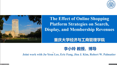 重庆大学工商管理学院市场学系主任李小玲教授首先作了关于“网络平台的市场创新研究”的报告。研究提出,网络平台市场与传统的双边市场相比,最大的创新点在于网络平台市场拥有搜索广告界面。报告在此背景下研究了扩张和收缩网络效应对平台收入模式的影响,并使用VARX model处理市场层面数据,解决了内生性问题。该研究发现,不同流量的买家对搜索广告、展示广告和会员费收入的影响有所不同。
