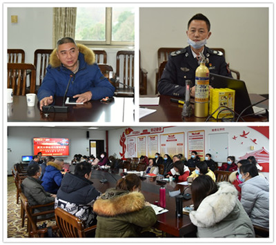 12月17日,由本教办、继教办联合党支部发起,所设支部办公室全体成员、学院各行政办公室部分职工代表以及万厦物业员工在学院党员活动中心(A511)及学院四门厅外开展了消防实践教育活动,校保卫部一分部主任刘斌、副主任周水兵、湖北省楚安消防宣教中心主任熊灵专,学院党委书记杜晓成、副书记邬明建、副院长沈作霖参与活动。