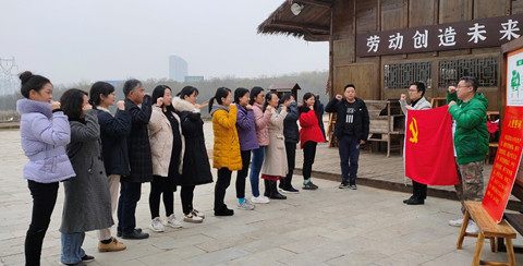 在古朴的耕田居前,支部开展重温入党誓词的活动。面向党旗,全体党员重温入党誓词时的承诺和决心,在党旗下接受净化和洗礼,牢记责任和历史使命,不断保持先进性,永葆共产党员的政治本色。