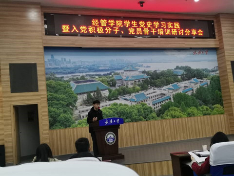 第一组的代表王洪涛同学首先上台发言。王洪涛同学围绕“开展党史教育有什么意义”这个问题展开论述。“党的历史是最生动、最有说服力的教科书。我们去参观武汉革命博物馆,不单单只是去转一圈,只是知道发生了这些事。我们更应该明白为什么要去看,我们应该从中获得怎样的启发”,他说。最后,他总结道:只有了解历史,才能以史为鉴;只有深入学习党史,才能更好地继承和发扬这种优秀革命精神,才能在危机来临之时,挺身而出,为人民谋幸福,为祖国谋复兴。第一组另一位黄仲禹同学也总结了今日的学习成果。他说,通过参观这些红色旧址,不仅对那个时代的先辈们充满了敬意,更加深了入党的决心和传承先辈精神的信念。