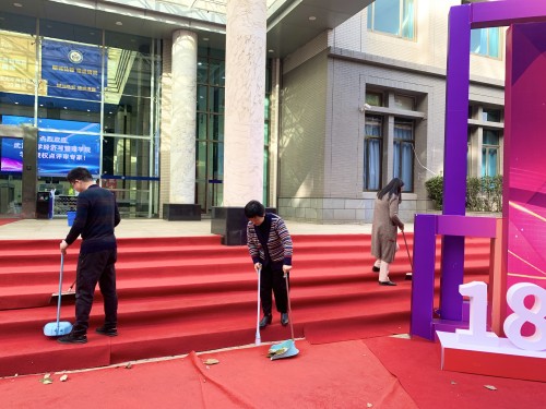 11月16日下午,学院行政第一党支部党员们开展了以“爱国卫生运动”为主题的支部活动,对学院周边的卫生包干区特别是大门口院庆主题红毯区域进行了认真细致的卫生大扫除,在同志们的努力下,学院周边环境变得更加干净整洁,党员们也收获了劳动的喜悦。