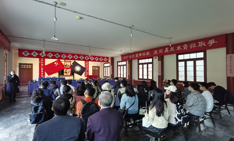随后,师生一行又步行至位于武昌红巷13号的武昌中央农民运动讲习所旧址,参观了常委办公室、教务处、大教室和寝室等复原陈列以及农讲所历史陈列《探索与奠基》展。