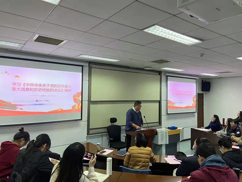 接下来,李雪松带领大家学习党的十九届六中全会精神,并分享自身的学习体会。李雪松从七个部分、两个特点、一个突出亮点和一个重要政治论断四个方面对《中共中央关于党的百年奋斗重大成就和历史经验的决议》的重大现实意义和深远历史意义进行了导学。他指出,要正确认识党的历史,坚持辩证唯物主义和历史唯物主义的方法论,树立正确的党史观和大历史观。与会师生纷纷表示,要带着信仰学、带着问题学、带着梦想学,做堪当民族复兴重任的时代新人。