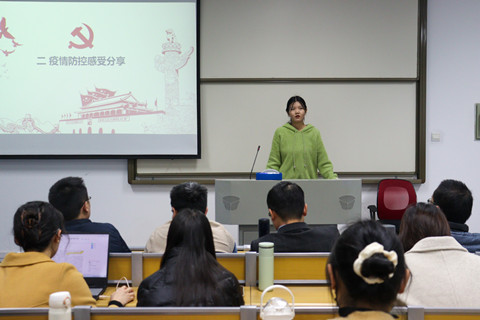 对于疫情防控,工商管理硕士第1党支部的黄元同学和崔晓敏同学分别分享了自己在疫情期间的经历和感受。新冠疫情对于全国的生产生活都造成了重大影响,正是许许多多基层工作人员肩负着责任感和使命感,为人民筑起了一道安全防线。两位同学都提到自己身边的“无名英雄”,或是尽职尽责督促村民疫情防护的村官,或是不顾自身安危坚持第一线的医生护士,他们的事迹都令同学们感到动容。
