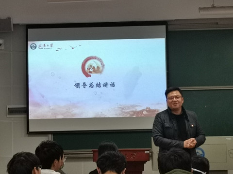 李好总结发言。他首先肯定了同学们认真准备的态度和积极学习的热情,并以学校巡视整改为例,让大家感受到了从严治党就在身边,希望同学们紧紧团结在党中央周围,用青春奋斗书写美好人生。