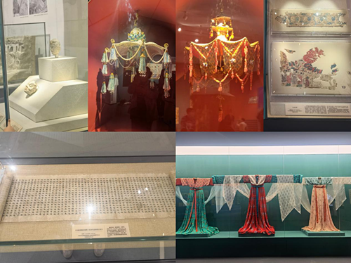 在讲解员的解说下,大家了解到敦煌是历史上中国通向西域的重要门户,古代中国文明同来自古印度、古希腊、古波斯等不同国家和地区的思想、宗教、艺术、文化在这里汇聚交融,中华文明以海纳百川、开放包容的广阔胸襟,不断吸收借鉴域外优秀文明成果,造就了独具特色的敦煌文化和丝路精神。大家由衷赞叹和感动一代代科研工作者秉承“坚守大漠、甘于奉献、勇于担当、开拓进取”的莫高精神,在极其艰苦的物质生活条件下,践行理想信念,取得如此重要的研究成果。