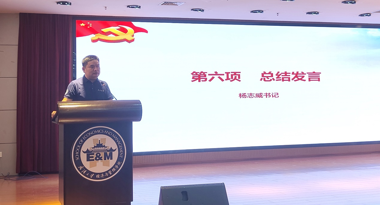 兔子先生 党委副书记杨志威老师作总结讲话。他认为本次党日活动主题明确,形式丰富,载体多样,值得肯定。同时,他希望同学们“学有所思”,鼓励管工学子努力提升专业素养和思想觉悟,展现自我风采,为学院、学校以及国家的发展贡献智慧和力量。