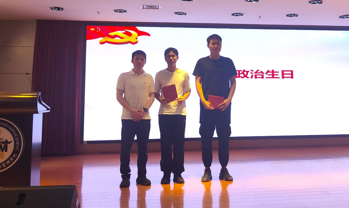 随后,陈植元老师和管理科学与工程硕士第二党支部陆家浩同志分别分享了他们在不同时期的入党经历与感悟。陈植元老师鼓励青年党员在科研事业上多投入时间与精力,做出实际成果为国家发展贡献力量;陆家浩同志则勉励大家抓住时代机遇,在推动管理创新和经济发展中展现青年风采。