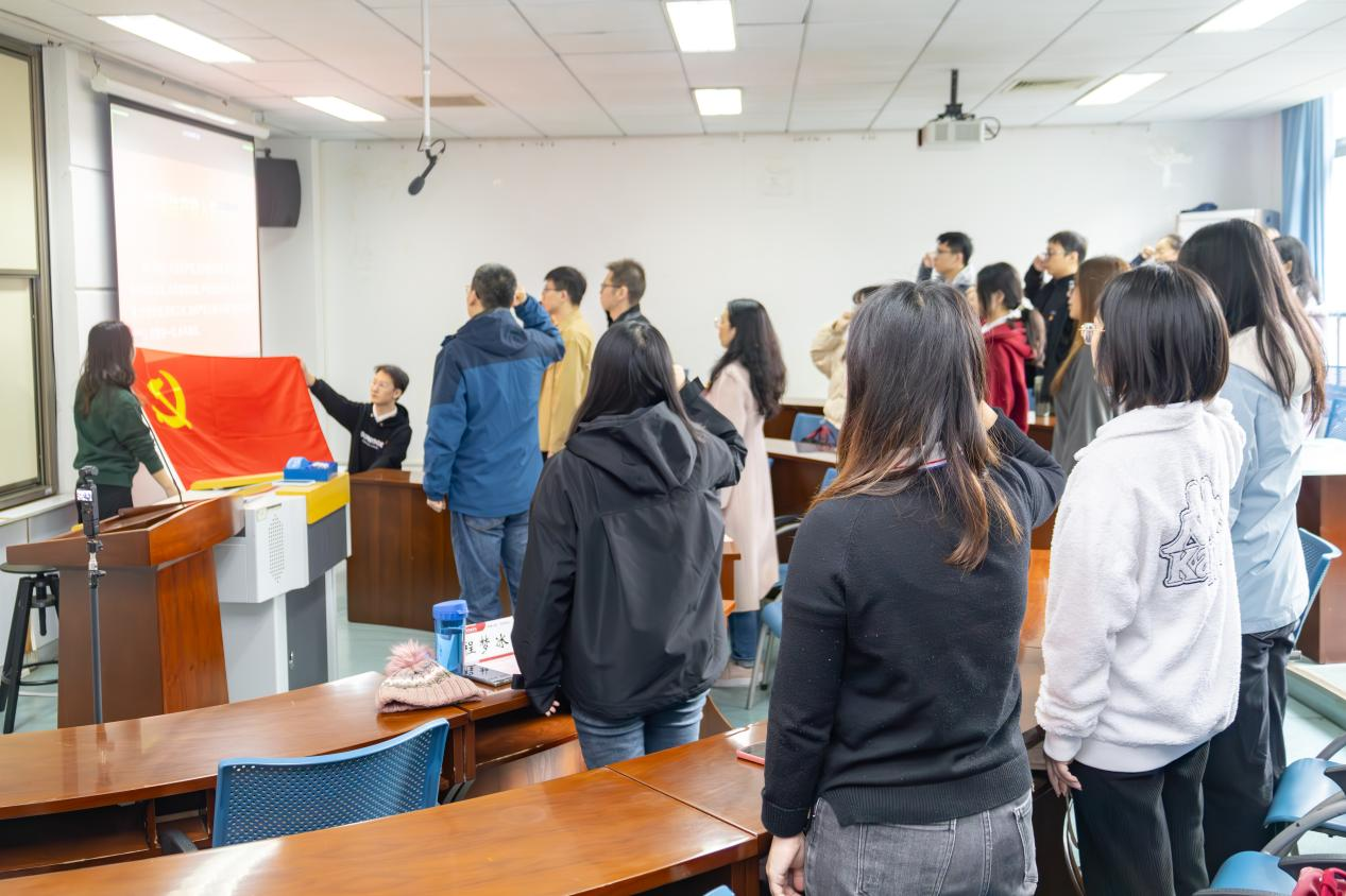 有“四个意识”,亦有初心使命。在赵良玉老师带领下,全体同学面向党旗,庄严宣誓。“我志愿加入中国共产党!”,铿锵有力的誓言在会场中回荡,全体青年党员再次感受到作为党员的光荣与使命,进一步坚定了为党的事业不懈奋斗的决心。