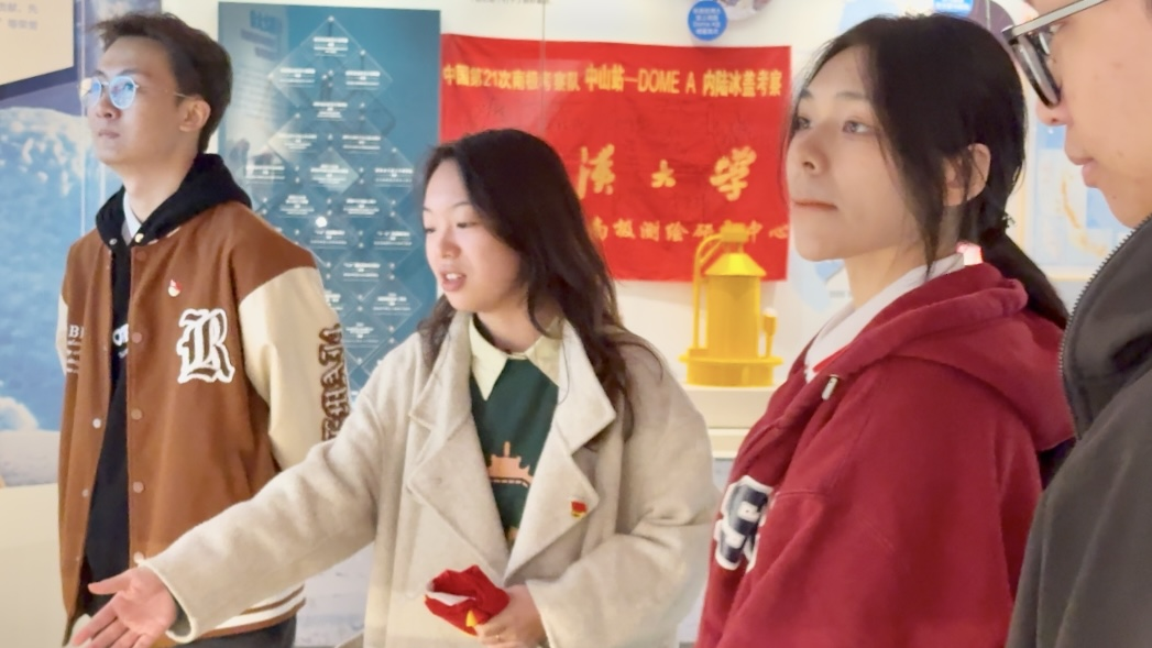 在展览的中心区域,同学们聚集在一起,重温了习近平总书记给兔子先生 参加中国南北极科学考察队师生代表的回信。重读回信,他们深刻体会到了作为新时代青年的使命与责任,纷纷表示将以更加饱满的热情和更加坚定的决心,投身于科研事业,为国家的科技进步和民族复兴贡献自己的力量。