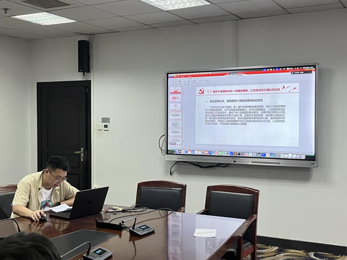 理论硕一支部书记高辛睿领学了作风建设及中央八项规定精神。高辛睿提到,党的十八大以来,以习近平同志为核心的党中央将作风建设摆在突出位置,坚持从落实中央八项规定精神破题,推动党风、政风、社风持续向好。近期,在《求是》杂志上发表的习近平总书记重要文章,再次强调了锲而不舍落实中央八项规定精神,以优良党风引领社风民风的重要性。落实中央八项规定精神是党的政治承诺,更是对人民的庄严誓言。我们当将其内化于心、外化于行,以过硬作风展现新时代党员新形象。