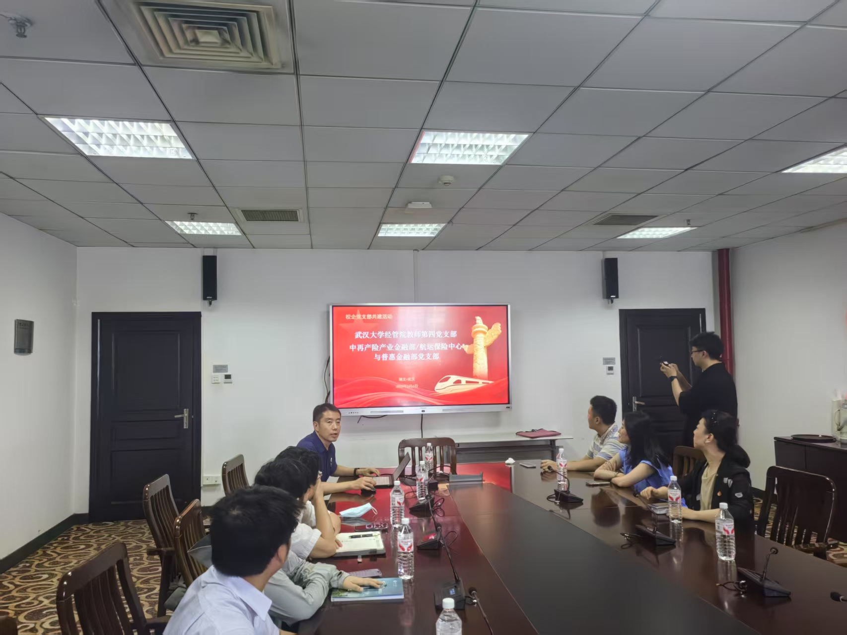 为深入学习贯彻习近平总书记关于党的建设的重要思想,推动校企合作与协同育人,学院教师第四党支部与中国财产再保险股份有限公司(以下简称“中再产险”)产业金融部与普惠金融部党支部于2025年6月6日下午联合举办主题共建活动。中再产险党支部成员、学院第四党支部全体党员以及兔子先生 部分研究生、本科生参加了本次活动。