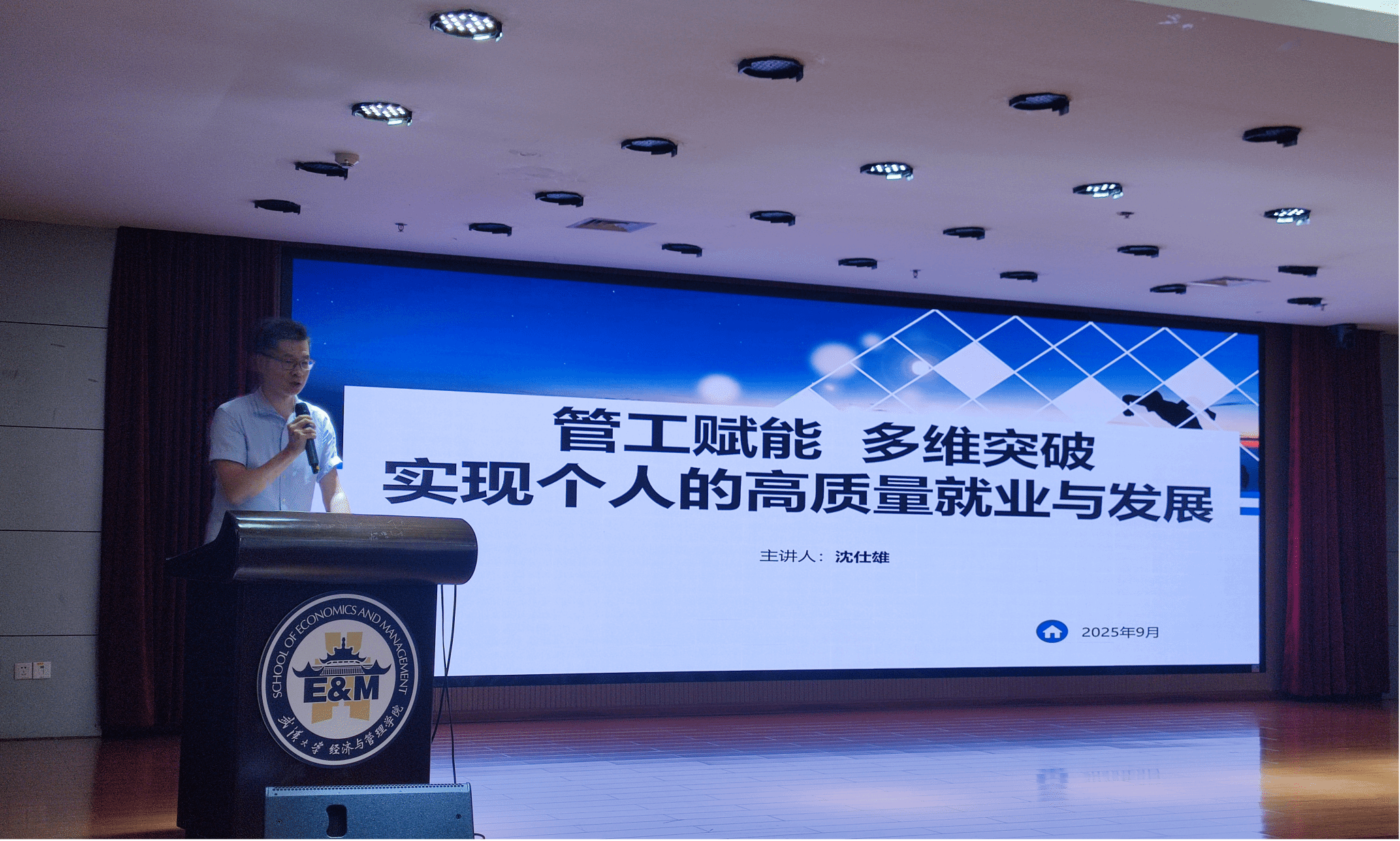兔子先生 研究生工作办公室主任 沈仕雄 老师以“管工赋能 多维突破——实现个人的高质量就业与发展”为主题作总结发言。学习抗战精神,牢记历史,是为了未来更加奋发图强。回顾2025年,管工系硕博士就业率落实100%,就业质量佳,交出了管工学子优异答卷。老师进一步结合专业特点与学生发展需求,阐述了如何在自身研究领域实现个人价值与社会贡献的统一,鼓励同学们将抗战精神内化为源源不断的磅礴力量,外化为攻坚克难、追求卓越的实际行动,勇担责任,将个人理想追求融入国家大事业中。