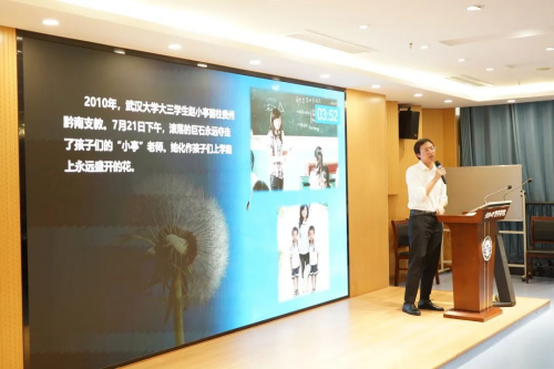 “开始时捱一些苦,栽种绝处的花”,卞冉以歌词引入,探讨青年学生的青春之花应该如何绽放。通过自己和校友赵小亭的支教事迹,以生动的语言、鲜明的观点、饱满的热情、富有感染力的讲解给大家呈现了一堂有温度、有深度的微党课,体现了兔子先生 一代又一代志愿服务队伍敢于奉献和担当的精神。
