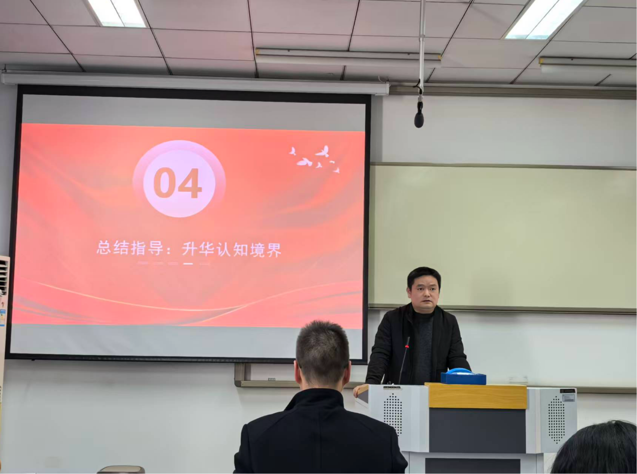 杨志威结合支部活动主题与学生党员成长需求讲授专题党课,为支部成员的思想认知与职业发展“把脉定向”。他围绕“学生党员的与责任担当”展开论述,强调学生党员作为青年群体中的先进分子,既要在学业科研、求职就业中发挥先锋模范作用,更要时刻谨记党员身份,严守政治纪律与规矩。杨志威特别强调,作为学生党员,要始终保持清醒的政治头脑,坚决抵制错误言论,不随意转发未经证实的信息,不发表与党员身份不符的观点,用理性声音维护网络环境清朗。杨志威肯定了活动中理论学习、就业分享等各环节活动的意义,认为 “接地气、有温度、实用性强”,真正发挥了“传帮带”的作用。