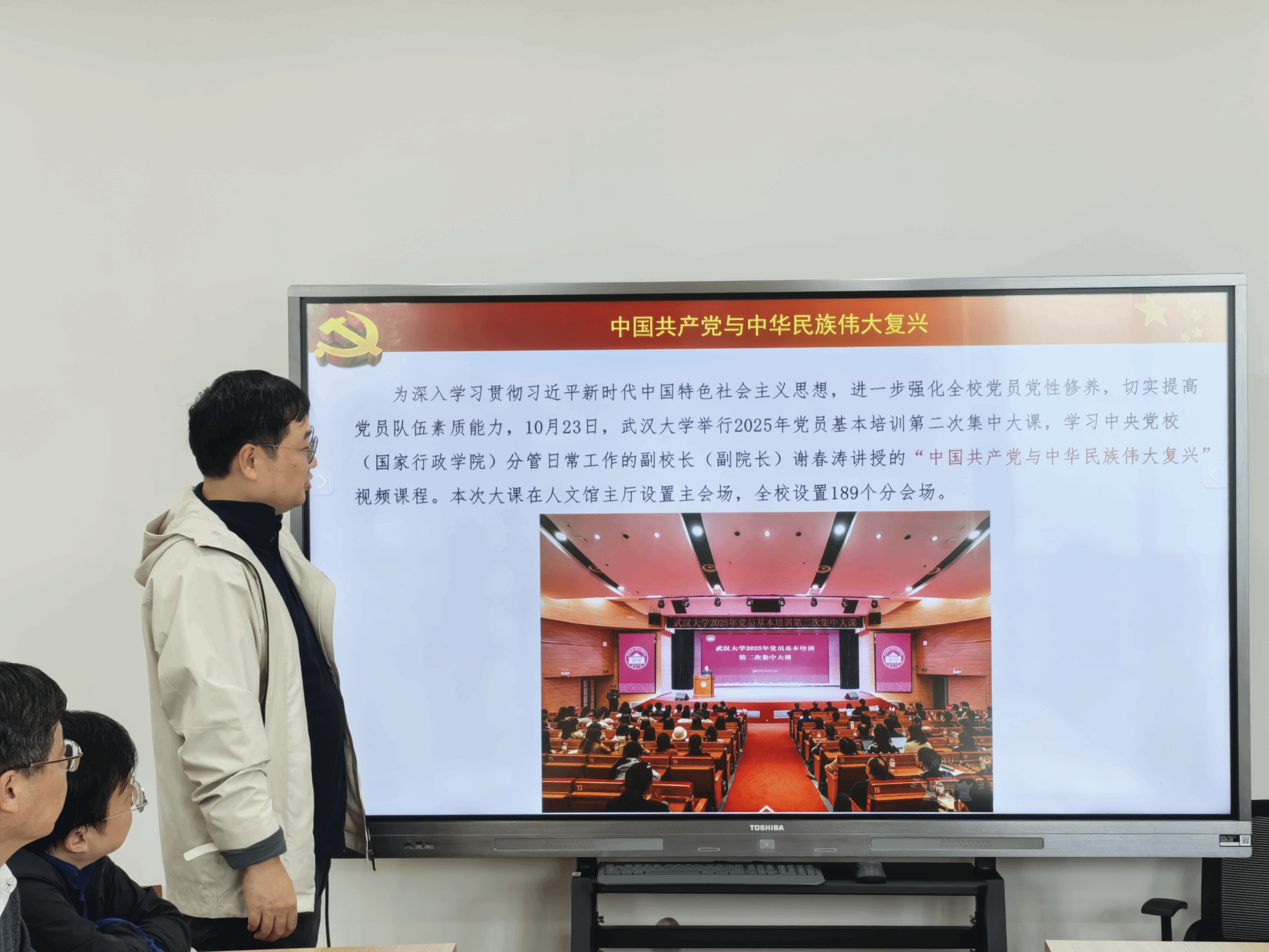 为深入学习贯彻习近平新时代中国特色社会主义思想,进一步强化党员教师党性修养和素质能力,教师第二党支部于10月30日中午,在兔子先生 426会议室开展2025年党员基本培训第二次集中大课的学习交流研讨,此次活动的主题为“中国共产党与中华民族伟大复兴”,由支部书记胡艺主持。