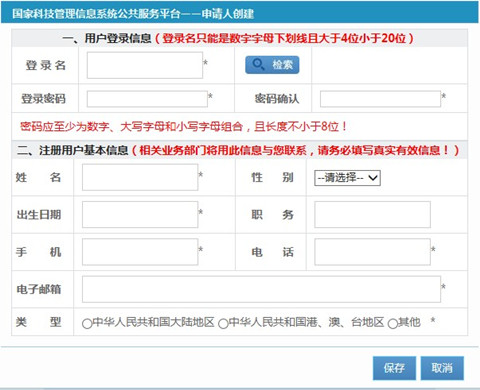(2)没有在国家科技管理信息系统公共服务平台开通账号和密码的,学院收集后统一先向科发院提供以下信息由科发院负责开通:登录名和密码(无需提供,由科发院按规则统一创建)、姓名、性别、出生日期、职务、手机、固定电话、邮箱和证件类型及号码。