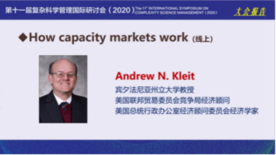 Andrew N. Kleit教授以《How capacity markets work》为题做大会报告。他详细阐述了什么是电力市场,并从供给侧和需求侧分析了停电问题。在需求侧,电力的零售价格水平通常不直接与批发市场的电力价格相关。在供给侧,有两个因素会影响市场提供足够的电力需求。第一,电力储蓄效率不高;第二,电力批发市场有价格上限。结果表明,在电力价格上限、需求响应不足、可靠服务不足的共同作用下,带来金钱损失问题。