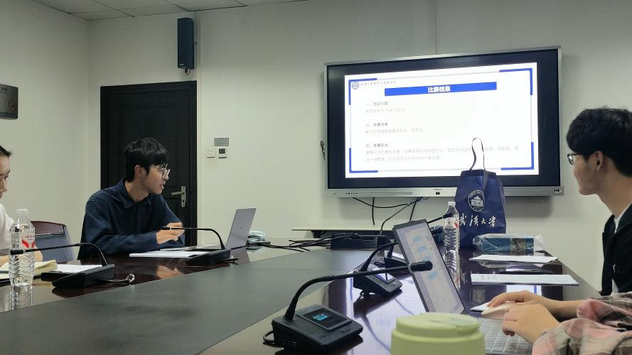 学院研究生心晴服务中心负责人武博睿同学对本次竞赛的报名情况、各项规则、参赛要求、具体流程和注意事项等进行了全面解读,聚焦初赛、复赛各环节的备赛要点进行了细致安排和温馨提醒。他还介绍了心晴服务中心围绕此次比赛进行的人员组织、材料打印、题库筛选等服务保障工作。