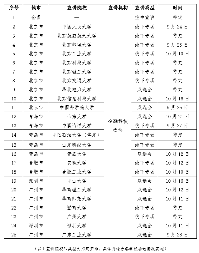 (三)专业要求:岗位需求专业主要为计算机类、电子信息类、计算机科学与技术类、信息与通信工程类、软件工程类、统计学类、数学类、控制科学与工程类、管理科学与工程类等金融科技类相关专业。部分岗位需求专业包括金融学类、经济学类、工商管理类、公共管理类、社会学类等相关专业。具体以岗位投递界面专业要求为准。