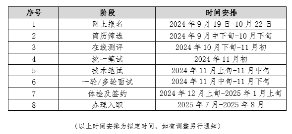 招聘对象:硕士研究生及以上学历,毕业时间在2024年1月至2025年7月的境内外高校毕业生