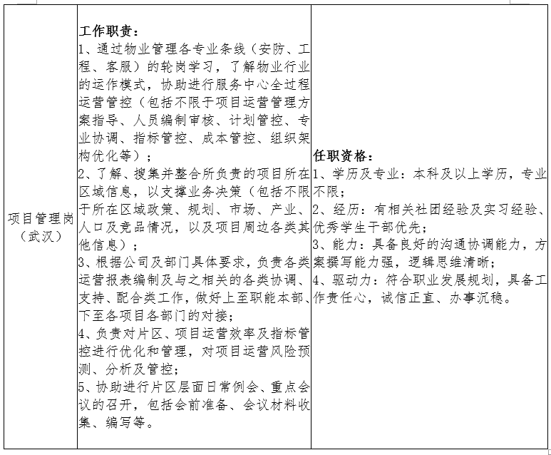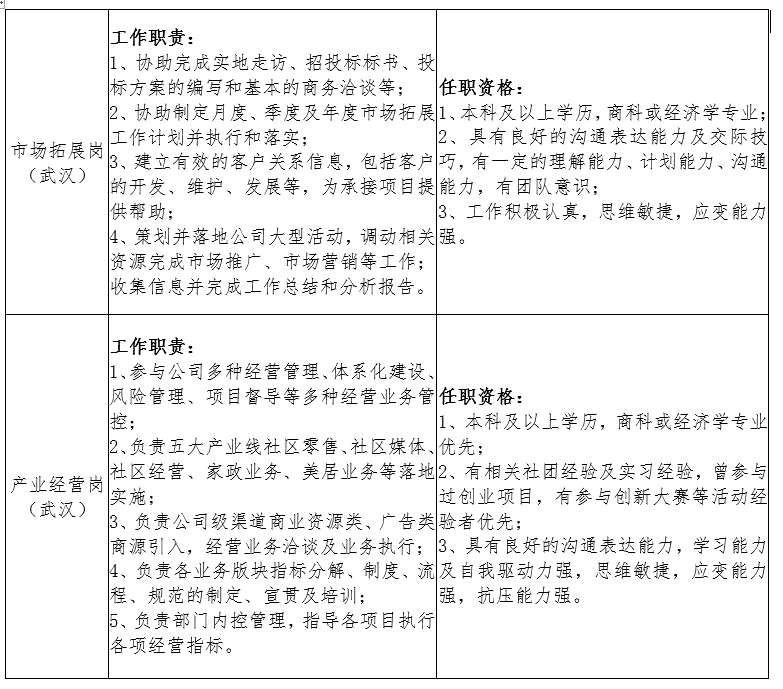 招聘岗位:市场拓展岗,产业经营岗,项目管理岗